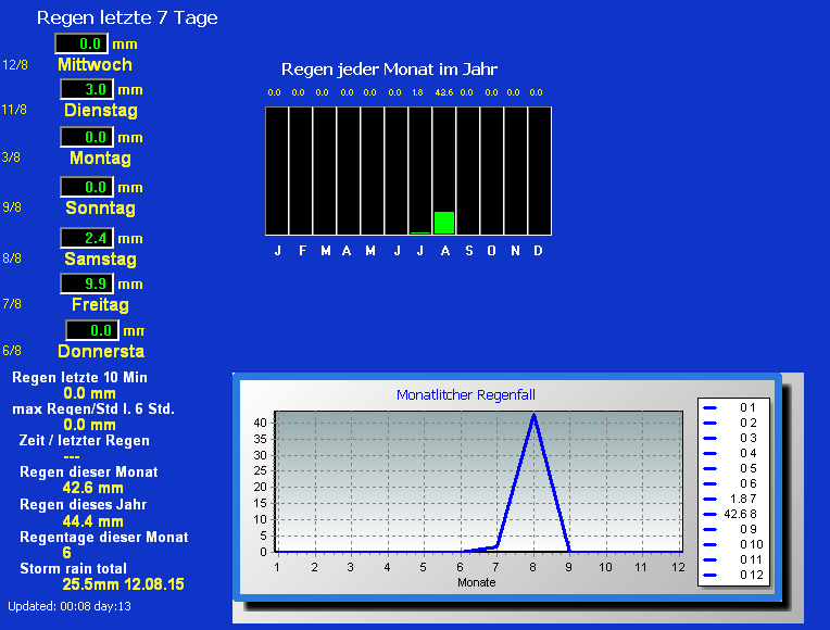 Höchste Regenmenge/Stunde:13.8 mm um: 22:16 Uhr am: 10 August 2015