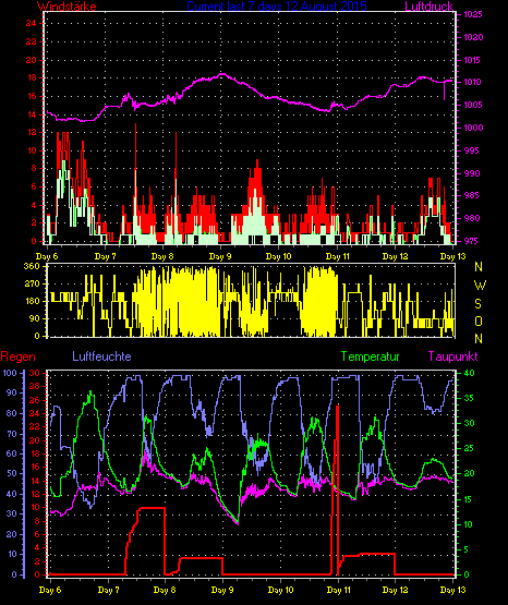 Höchster Luftdruck: 1013.0 mb um: 00:27 Uhr am: 28 Juli 2015